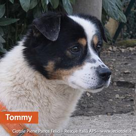 Tommy è un giovane meticcio di piccola taglia, che pesa 9 kg di pura energia e curiosità, pronto a donare tutto l'amore che ha nel cuore. La sua storia è segnata da un passato difficile: è nato e cresciuto in condizioni di grande degrado, rinchiuso in un garage di lamiera insieme ad altri cani, da cui i nostri volontari sono riusciti a salvarlo insieme al suo amico Johnny e ad altri compagni. Nonostante le difficoltà vissute, Tommy si è dimostrato un cane dolce e affettuoso, che si lega profondamente alle persone e agli altri animali. Ha bisogno di una famiglia paziente e amorevole, che gli offra sicurezza, attenzioni quotidiane e la possibilità di vivere una vita serena, lontano da sofferenze e solitudini, valorizzando la sua voglia di scoprire il mondo e di costruire nuovi legami.