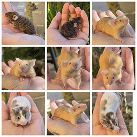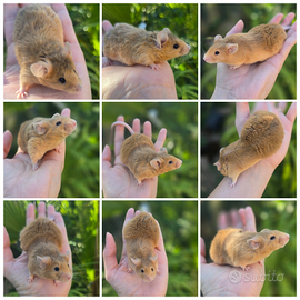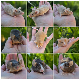 Sono disponibili topi domestici di linee olandesi. Provengono da topi da esposizione e di razza, sani e non consanguinei (fancy mice e showtype) . Sono molto diversi dai tipici topi domestici, in quanto sono più grandi, hanno orecchie più grandi e un carattere molto più amichevole. Attualmente, questi animali sono sottovalutati nel mondo dei roditori e degli animali in generale. Hanno un carattere eccezionale, sono abituati a essere maneggiati e sono completamente socializzati. Il prezzo dipende dal colore, dalle caratteristiche e dal tipo di pelo dell'animale. Vengono offerti solo come animali da compagnia. Per info e disponibilità sulle future cucciolate e prenotazioni scriveteci pure, per favore no perdi tempo. Il prezzo è a partire da