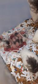 Disponibili topi mucca sia da pasto (ottimi per sbloccare pitoni reali non mangianti) sia da compagnia. Animali allevati da me assolutamente non aggressivi, se abituati al contatto umano sono ottimi animali da compagnia.