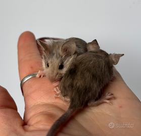 Vendo cuccioli di topolini da compagnia (mus musculus) Siamesi, Splash e Fuzz. Sono allevati in casa, abituati al contatto e in buona salute. Genitori Visibili ?