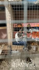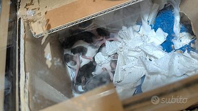 Vendo coppie di topolini, in foto si vede padre e madre. Si vendono preferibilmente in coppie o più esemplari. Disponibile anche grande gabbia su richiesta fornisco foto aggiuntive. I topini hanno una decine di giorni e sono disponibili dopo lo svezzamento che richiede circa 20 GG. Ritiro a mano in zona Firenze.
