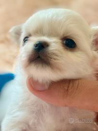 Cucciolo Maschio di chihuahua a pelo lungo nato il 24 marzo 2026. Viene ceduto da allevamento riconosciuto enci fci Torre Nuova con Pedigree Enci con Affisso , chip , sverminazioni , test dei riproduttori e ciclo vaccinale completo . Per motivi di serietà e mancanza di tempo chiediamo chiamata o messaggio whatsapp! Messaggi su subito verranno ignorati , quindi solo contatto al 3663409457 indicando per quale cucciolo/a chiamate . Consegna disponibile in tutta Italia