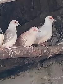 Si cedono tortore diamantine di varie mutazioni, pronte per la riproduzione che avviene tutto l'anno. Sono uccelli molto robusti e si abituano velocemente alla presenza umana. Il prezzo è per singola tortora.