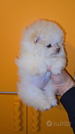 Disponibile alla prenotazione, sarà consegnata dopo 60 giorni, bellissima cucciola minuscola i femmina miniatura di Spitz tedeschi nano di Pomerania toy colorazione da foto, di 8 settimane, di altissima genealogia. I genitori hanno Il DNA depositato e pedigree importanti. ATTENZIONE nella scelta del vostro cucciolo, l'ENCI definisce meticolosamente le caratteristiche di un vero pomerania (colori, mantello, corporatura ecc), potete visionare tutto nel sito ufficiale, diffidate dalle imitazioni.