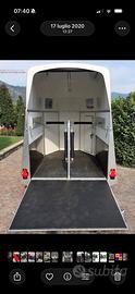 Vendo trailer 2 cavalli portata max 2000 kg immatricolato per station wagon 1400 kg con allestimento interno protezioni laterali e battifianchi imbottiti, ruota scorta e supporto rimorchio. Percorso circa 2000 km. Pellicola Wrapping 3M special tema Alpaca Pari al nuovo. Revisionato - Qualsiasi prova - no perditempo