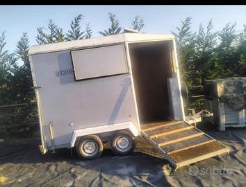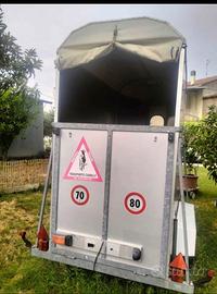 Vendo Trailer Cavalli da 1 posto e mezzo per passaggio a 2 . Dotato di tappeto antiscivolo, gomme nuove e ruota di scorta. Scadenza revisione agosto 2027. Prezzo trattabile. Scrivete per cortesia su whatsapp. 338/9715880