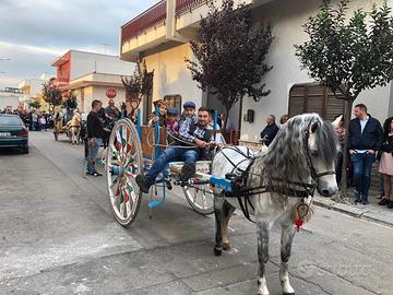Vendo Traino completo di finimento e villanzola per mezzo cavallino ( il cavallo non è in vendita) , quello in foto è alto 1,30 a garrese.