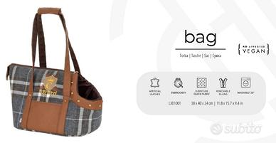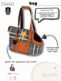 Dimensione 30 × 40 × 24cm Comoda borsa realizzata in tessuto resistente a danni e sporco. Ogni volta che vi sposterete, garantiranno al vostro piccolo amico un trasporto sicuro. Materiali di alta qualità, combinazione di tessuto a quadretti e similpelle con ricami esclusivi.