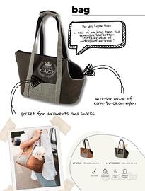 Dimensione 30 × 40 × 24cm Comoda borsa realizzata in tessuto resistente a danni e sporco. Ogni volta che vi sposterete, garantiranno al vostro piccolo amico un trasporto sicuro. Disponibile in 2 colorazioni