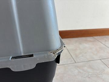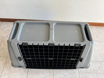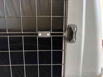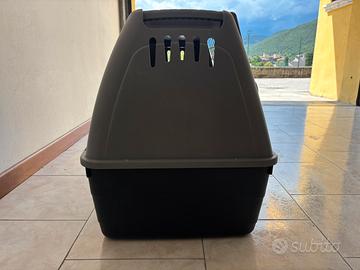 Come da foto, vendesi trasportino taglia media tra parentesi (usato per Labrador) in buone condizioni a parte un angolo, come si vede in foto. Solo ritiro in zona.