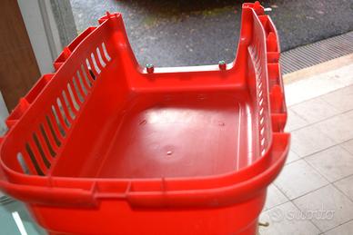 TRASPORTINO PER ANIMALI DI COLORE BIANCO/ROSSO IN PLASTICA RIGIDA,PORTA IN FERRO. LUN. 48 X LARG. 33 X H. 31
