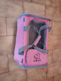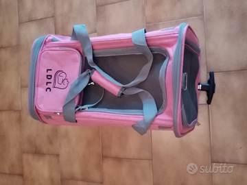 Vendo trasportino trolley per cani/gatti. Trasparente con maniglia telescopica, color rosa. Multifunzione 4 in 1. Tracolla, trasportino, trasportino di rotolamento trolley, portabagli per auto. Nylon, lavabile. Assicura il flusso d'aria e visione esterna. Cintura di sicurezza e con tasca grande. Misura 31x33x50. Estensione 86,5