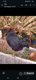 Tre galli di un anno ruspanti liberi in giardino