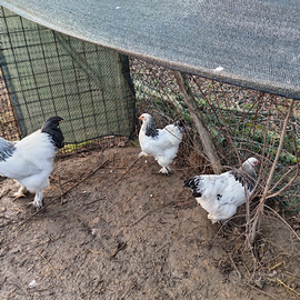 Trio brahma Bianco Columbia Nero, composto da 1 maschio di 10 mesi e mezzo, una femmina di 10 mesi e da una femmina di un anno e 3 mesi.