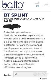 Tutore Balto originale nuovo modello BT Splint per lassita di carpo o tarso. Taglia XS per razze piccole tipo volpino, maltese, barboncino. Spese spedizione comprese.