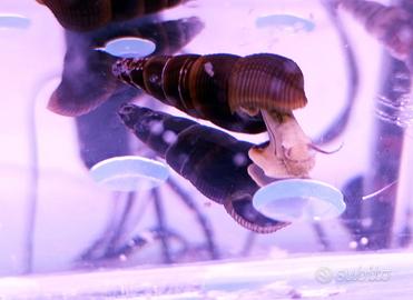 Cedo esemplari di Tylomelania yellow, lumaca d'acqua dolce assolutamente non invasiva, sessi distinti ma non riconoscibili, ovovivipara, genera un piccolo formato circa ogni 30gg. Alimentazione varia, si adatta bene a valori dell'acqua diversi purché non acidi. Raggiunge una gandezza di circa 10 cm ed è piuttosto longeva (2-3 anni).