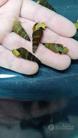 Vendo tylomelania yellow di circa 2/3 cm riprodotte e allevate nel mio acquario alimentate con mangimi e verdure sbollentate, abituati con semplice acqua di rubinetto.