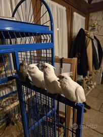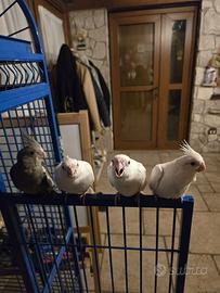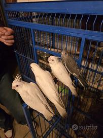 Vendesi nr. 3 splendidi calopsitta albini allevati a mano appena svezzati. Prezzo di vendita 110? cadauno. Se presi 2 o in blocco possibilità di piccolo sconto. Ritiro a mano.