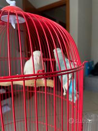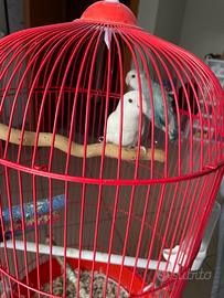 Vendo coppia pappagalli inseparabili, bianco femmina azzurro maschio hanno all' incirca 7/8 mesi vendo completi di gabbia e cibo , non effettuo consegne il ritiro è a carico dell' acquirente