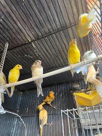 Canarini spagnoli e mosaici, dell'anno 2023, 2025, sia maschi che femmine, vendo tutto in blocco, 14€ ciascuno, le femmine sn ottime produttrici, per info contattatemi in privato