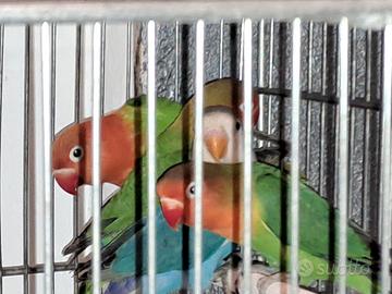 Vendo Agapornis Fischer regolarmente denunciati con anello, nati novembre 2025 pronti per la riproduzione verso aprile, 1 coppia maschio ancestrale e femmina blu, e 2 femmine ancestrale la coppia porta a mutazione blu