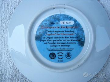 Piatto decorativo "Uccelli nell'inverno" serie numerata limitata di Jurghen Scholz da collezione.
