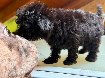 Come da titolo, disponiamo dell'ultima Femmina di barboncino mini Toy, colore nero, di 60 giorni compiuti il 12 aprile. Figlia di barboncini Toy di nostra proprietà, sempre visibili, la cucciola viene ceduta sverminata, microchippata e vaccinata adeguatamente all'età. Completamente svezzata, è ben socializzata, e abituata alla convivenza con Cani anche di grossa taglia nonché Gatti. Per qualsiasi informazione, non esitate a contattarci anche tramite WhatsApp ai numeri 3345623844 oppure 3280389859 La cucciola non è in regalo