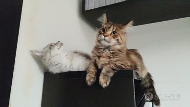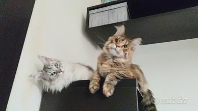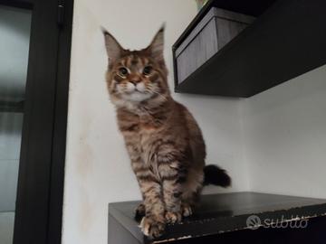 Disponibile ultima cucciola di Maine Coon brown shaded line . Genitori visibili di proprietà.La cucciola verrà ceduta con libretto sanitario completo di doppia sverminazione e vaccini , pedigree da compagnia, abituata a lettiera e tiragraffi, a cani, simili .. vive in famiglia, molto dolce e affettuosa, ottimo carattere socievole e coccolona. Genitori testati geniticamente di proprietà esenti fiv felv hcm pkd ecocardio nella norma, esami feci periodico negativo per germi batteri e giardia. Disponibile subito, 4 mesi. Non in regalo . Possibilità di consegna personalmente