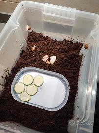 3 giovani lumache giganti specie Acathina, nate in cattività.