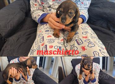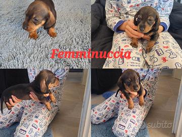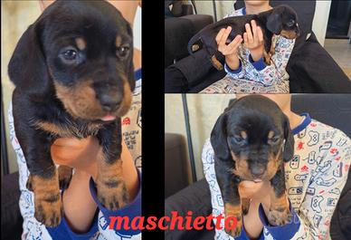 Disponibili cuccioli di bassotti tedeschi color nero focato/fulvo, nati il 10/03/2026. Disponibili a maggio con libretto sanitario, primo vaccino e sverminazioni. Genitori nelle foto di mia proprietà e visibili,mamma a pelo duro e papà a pelo raso.Per informazioni contattare il 338 87 91 063. ULTIMI TRE CUCCIOLI DISPONIBILI,2 MASCHI E 1 FEMMINUCCIA!