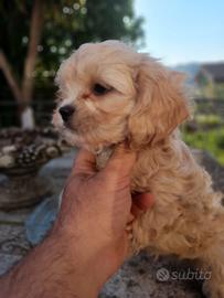 Disponibile da subito cucciolo maschio di maltipoo colore albicocca. Età 75 giorni sara ceduto con ciclo di sverminazione completa libretto e primo vaccino prezzo affare non trattabile genitori visibili chiamare se realmente interessati