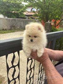 Ultimissimo cucciolo di Pomerania, maschietto color crema, in pronta consegna. Ha già due mesi e si consegna con trattamento antiparassitario, libretto sanitario, primo vaccino e microchip. NO PEDIGREE. NON è IN REGALO.