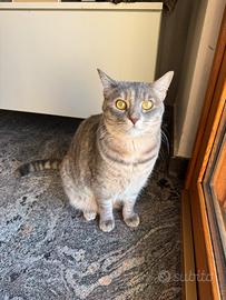 Lei è Nami, ad aprile farà due anni ed è vaccinata, microchippata e sterilizzata. È un fatto europeo piuttosto grande, con manto grigio e striature marroncine.
