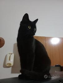Una gattina nera di 5 mesi cerca casa. È molto allegra, giocosa e mansueta. Trattata contro le pulci.
