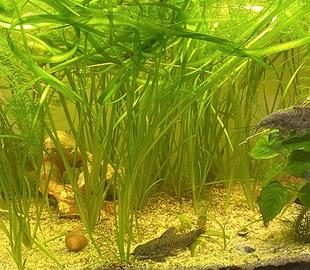 Vallisneria spiralis 'Leopard Caratteristica dei puntini rossi sulle foglie Velocità di crescita: Veloce Difficoltà: Facile Necessità di luce: Bassa CO2: Non necessaria