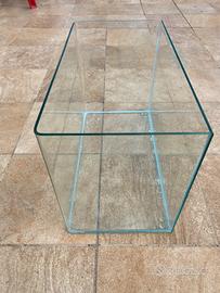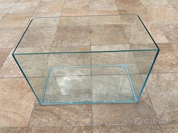 Come da foto vasca acquario vetro extrachiaro da 5mm con angolo curvi senza spigolo come nuova ha solo una scalfittura non rilevante come da foto usata per accrescere avannotti di guppy possibile allestimento completo con filtro sabbia e radice mangrovie originali già pronte al uso già lavato e sterilizzato