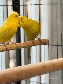 Un paio di pappagalli calore giallo, un maschio e una femmina, Il prezzo può trattabile