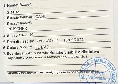 Cediamo a malincuore il nostro pinscher nano, in cambio chiediamo una cifra simbolica (170 euro) per le spese di vaccinazione, microchip e passaporto.
