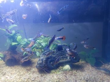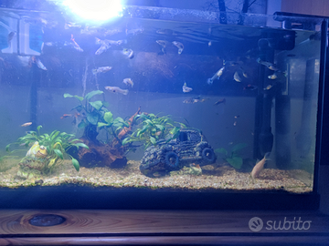 Vendo acquario da 60l completo di filtro,lampada allestito con pesci Guppy maschi/femmine. Un pesce pulitore ancistrus. Un corydoras aeneus ed un corydoras albino.