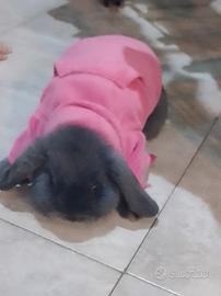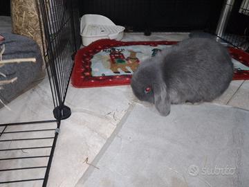 Vendo coniglio nano mini lop, maschio, sterilizzato e vaccinato, di colore grigio/blu, vissuto in casa, docile e curioso