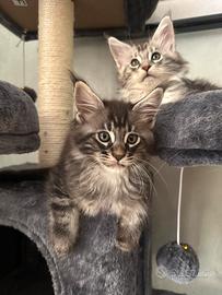 Cucciole Maine Coon con pedigree Disponibili due splendide cucciole Maine Coon, MINOU e MARGHERITA, le ultime rimaste di una cucciolata di 6. Saranno pronte per la consegna da fine agosto -Consegna con pedigree ENFI -Vaccinate e con microchip -Abituate alla lettiera e al contatto umano -Cresciute in ambiente familiare, seguite con amore e attenzione Genitori visibili. Ci troviamo a Corbetta (MI) - possibilità di visita su appuntamento. Per ulteriori informazioni, foto o video: -Contattaci via messaggio su Subito o su Instagram: @perladynastymaincoon