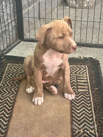 Vendo cuccioli di pitbull ohanno 2 mesi e mezzo il 18/04/2025 3 o3 maschi marroni chiari o2 femmine: una tigrata nera e una tigrata marrone chiaro e scuro o1 Maschio nero col collare bianco