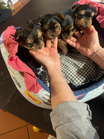 Cuccioli di Yorkshire due maschi e due femmine nati 04 Febbraio, saranno consegnati con pedigree mamma nella foto 2,8 kg e papà 2,6 kg. Per più info foto Milena 3280236852
