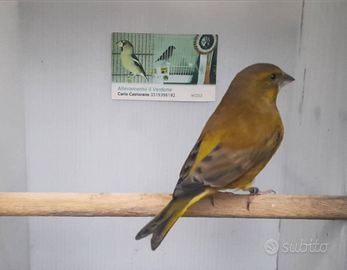 Disponibili Verdoni Ancestrale Giallo Dominante anellati 2025 maschi e femmine, allevati in purezza in gabbie da 65cm