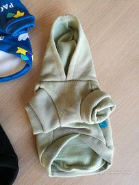 Tre vestiti misura XS, morbidi e caldi in pile per cane di piccola taglia. Il verde chiaro e il blu non sono stati usati. Il nero è stato messo per qualche ora, ha pochissimi segni di utilizzo.