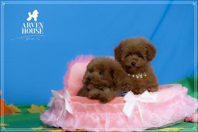 Disponibili cuccioli di barboncino toy, provenienti da genitori visibili, sani, testati e esenti da displasia della rotula e oculopatie. Il nostro allevamento selezionato e riconosciuto ENCI, Arven House, garantisce la massima qualità e cura.