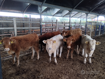 Vendo solo in blocco 29 vitelli 20 maschi e 9 femmine cherolet limousine e qualche incrocio, animali sani vaccinati ,sverminati alimentati chiusi all'ingrasso,peso medio 300 kg vendo a peso 5,50 + iva.