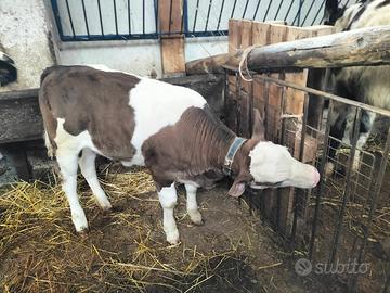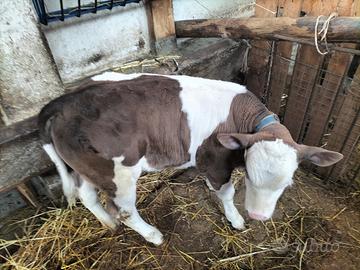 Bellissima vitellina di due mesi: madre Jersey e padre pezzato rosso italiano.