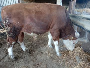 Vendo vitello maschio Simmental , mantello rosso/bordeaux con bianco visibile in foto.