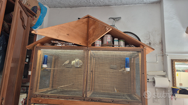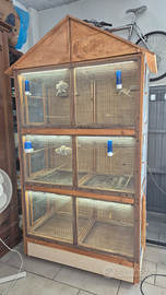 Vendo voliera a tre scomparti (divisibili quindi può diventare a 6)misure circa 230x120x60 cm con impianto luci a LED e centralina alba/tramonto piu soffiasemi.